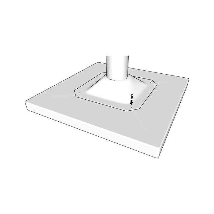 Step 2. Fasten the pedestal base to one end of the upright using 3x M8 Allen bolts. Attach the rubber feet to the base. Avoid over-tightening the flanged nut.