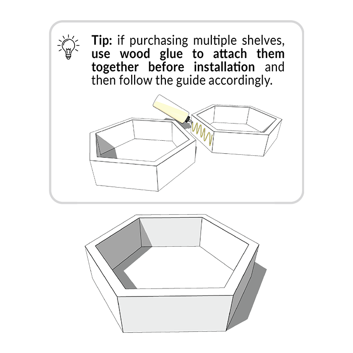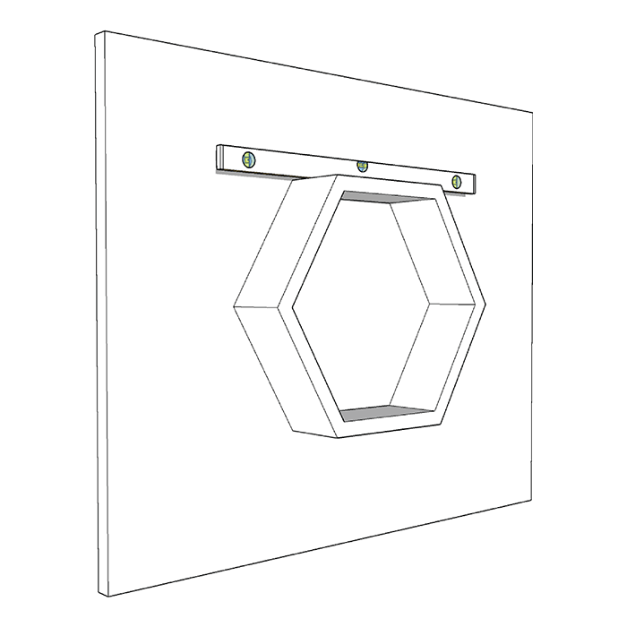 Step 6. Position the hex shelf and test if the back surface is in full contact with the fastener and the wall surface.