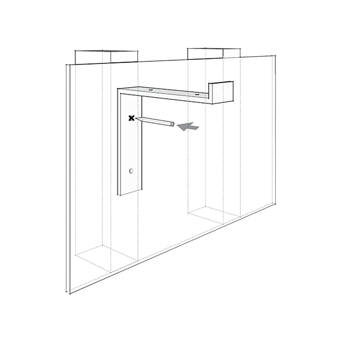 Step 1. Please read the Safety Guidelines stated above before you start assembling the product. Position the first bracket on your wall, ideally on a stud or blocking. Mark the top-most screw hole with the pencil or with a screw tip. Remove the bracket from the wall.