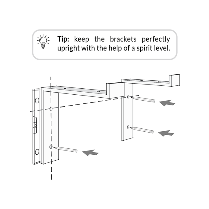 Step 5. Secure all brackets onto the wall using the long screws provided.