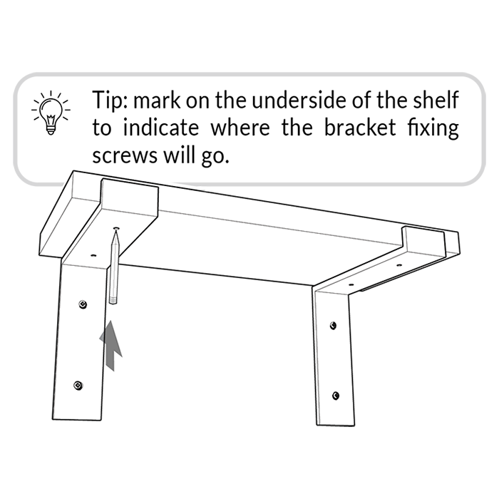 (¹) Please note that we recommend two brackets for shelves up to and including 900mm in length. Shelves of length 1200mm+ require three brackets per shelf.