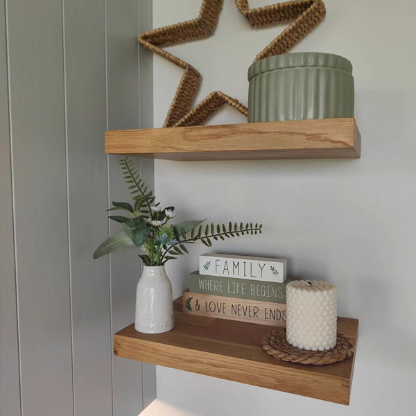 Our solid oak floating shelves will make a stunning addition to any space. Each oak floating shelf is hand-crafted and individually manufactured to the highest standard from sustainably sourced European Oak.