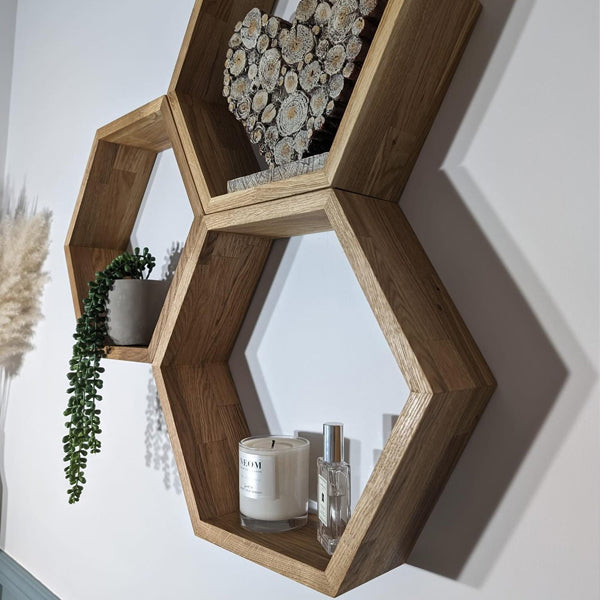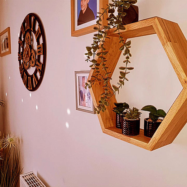 Our solid oak hexagon shelf will make a beautiful addition to any space. Each shelf is hand-crafted and individually manufactured to the highest standard from sustainably sourced European oak.