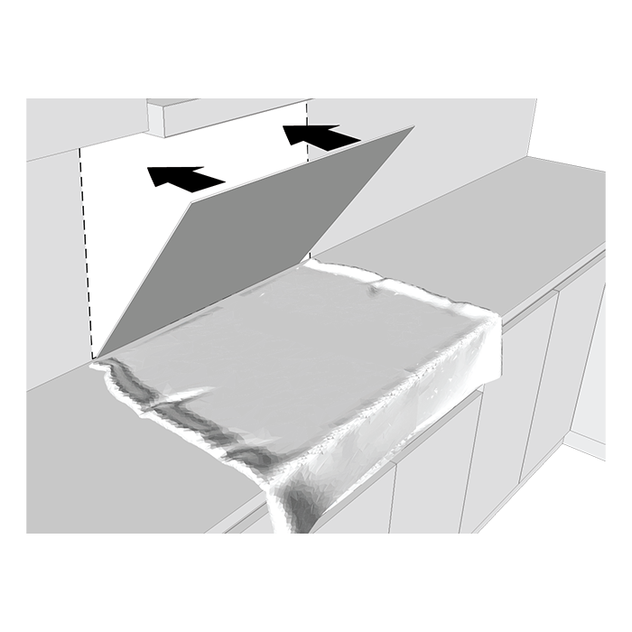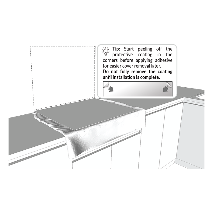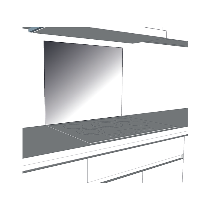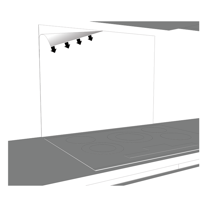 Step 3. Apply the splashback to the wall in your chosen location and push firmly to ensure good contact between the wall and the adhesive.