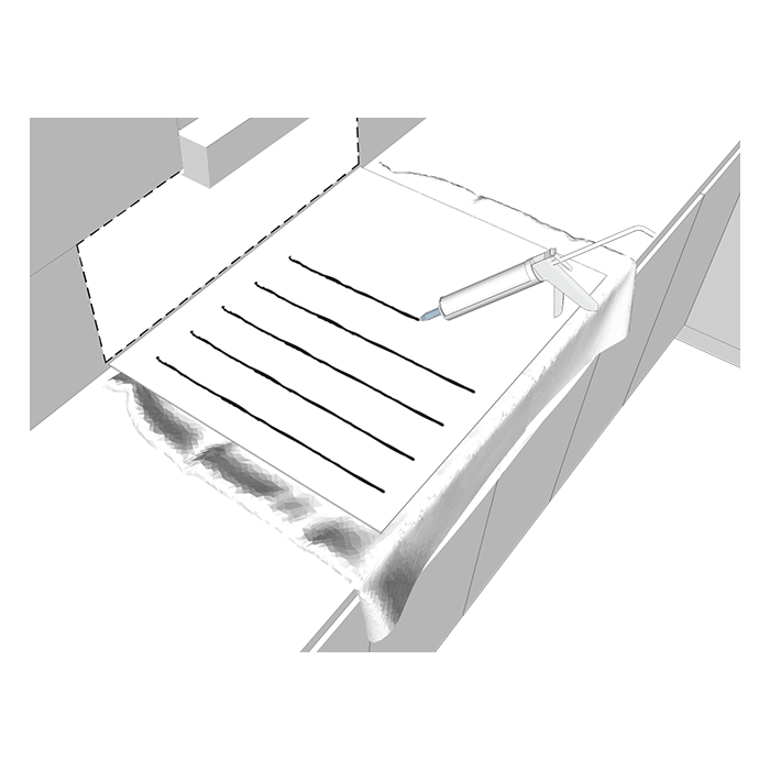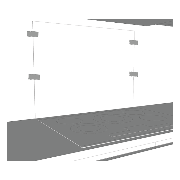 Step 1. Decide on the position and orientation of your stainless steel splashback. Allow approximately 1mm around each edge of the splashback to allow for material expansion. Mark the intended position on the wall.