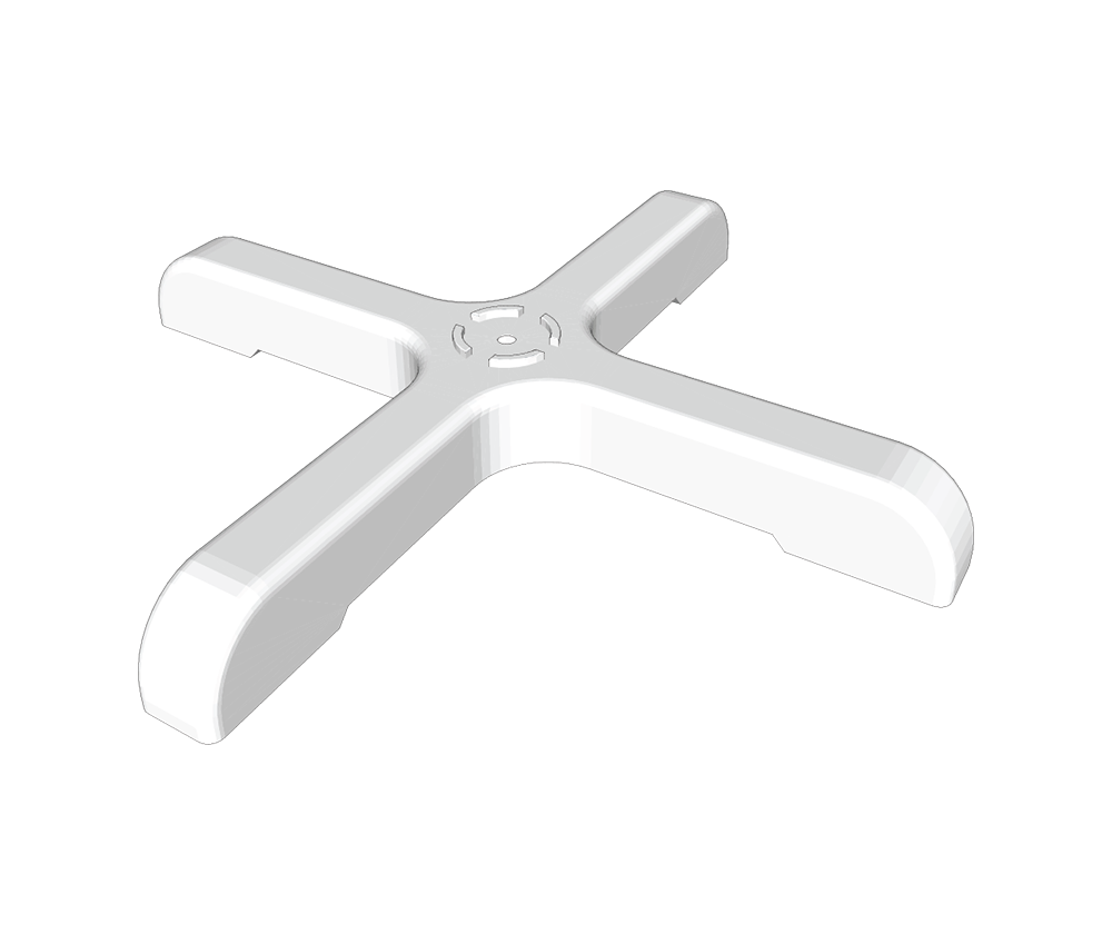 Step 2. Fasten the pedestal base to the other end of the upright using 3x M8 Allen bolts. Attach the rubber feet to the base. Avoid over-tightening the bolts.