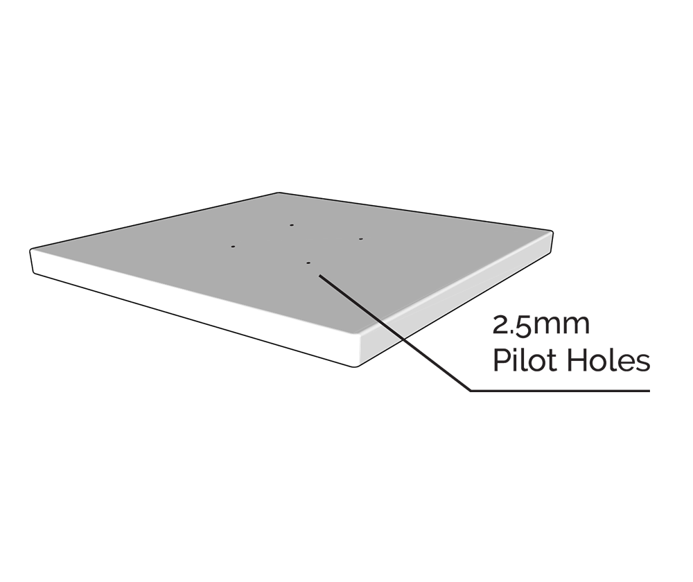 Step 4. Align the top plate holes to the pilot holes and secure it to the wood top using the provided pan head screws and an electric impact screwdriver. Tighten the screws to 60%, when all are in position, you can then fully tighten. Avoid over-tightening the screws.