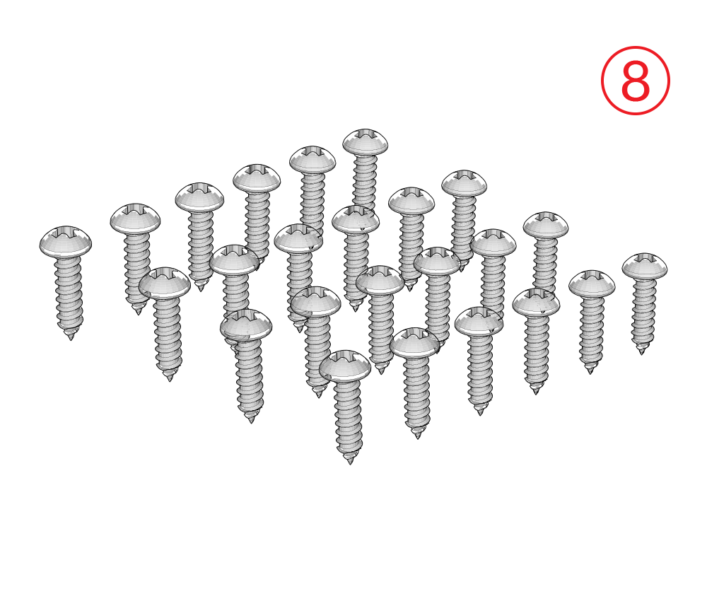Step 9. Attach the leg assembly to the wood top, using the provided screws (8).