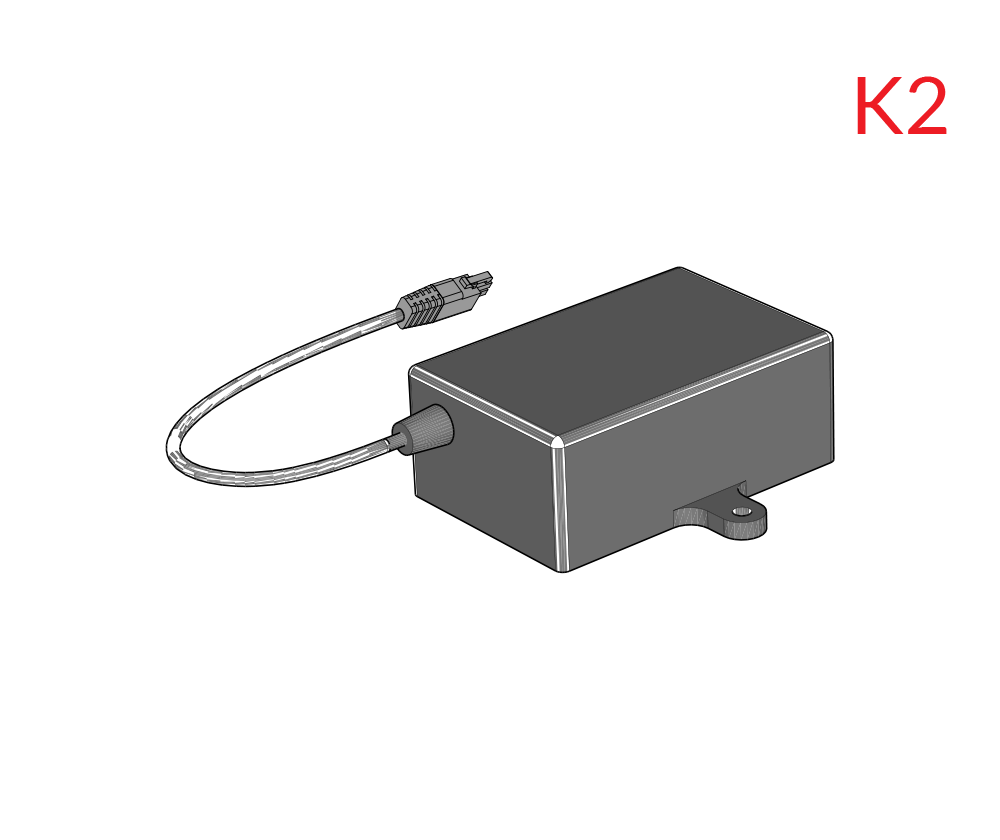 Step 10. Attach the control unit (K1) and the power block (K2) with screws (8) to the top.