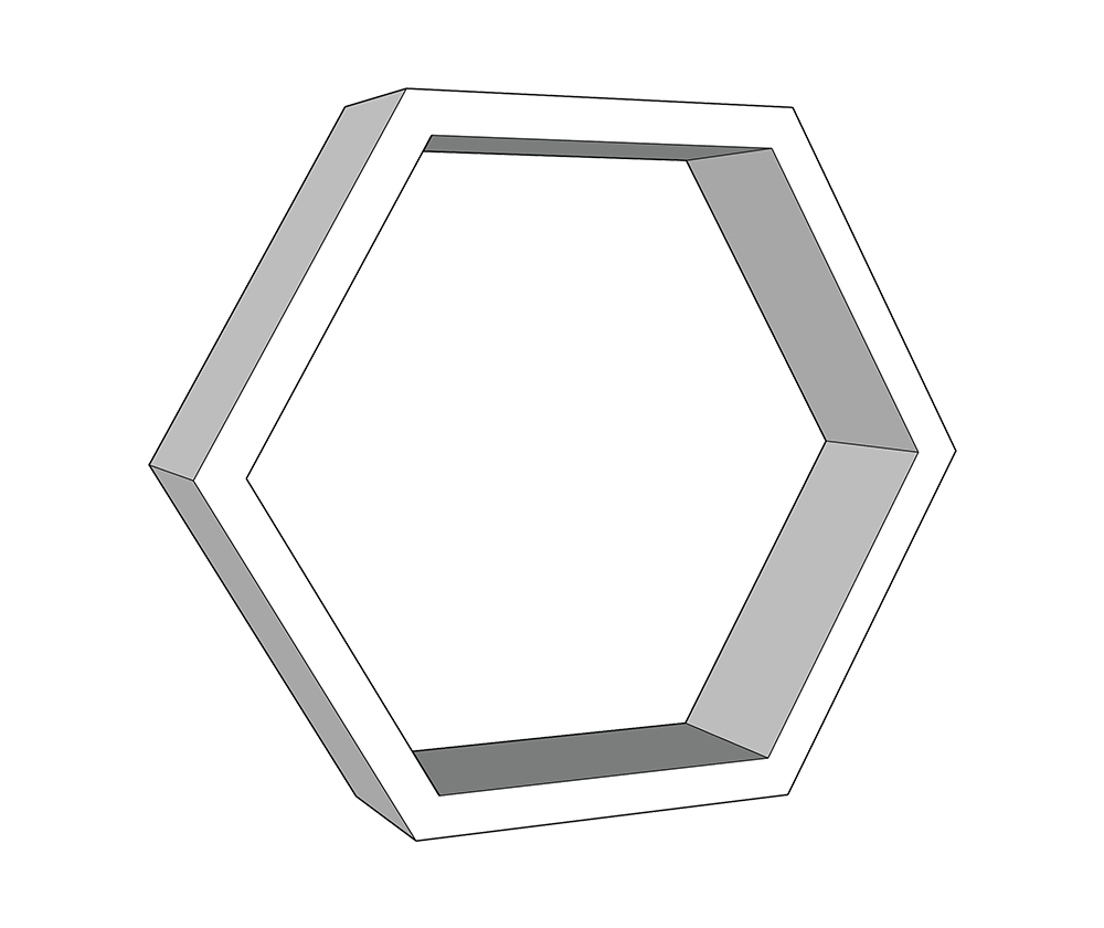 Step 6. Position the hex shelf and test if the back surface is in full contact with the fastener and the wall surface.