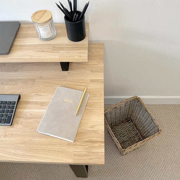 Let our 27mm thick oak wooden desks bring the beauty of nature into your home with their elegant, modern appearance and timeless appeal. Choose from various sizes to suit any office.