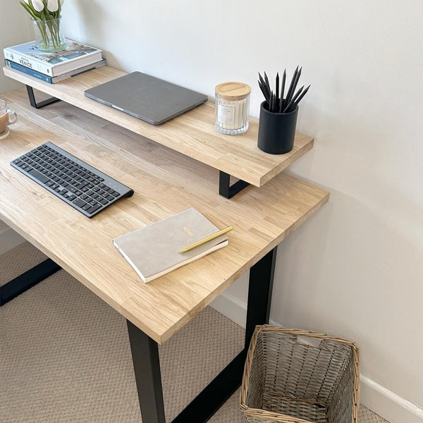 With a prominent grain and striking natural features, our range of oak desks are available prefinished with a natural wood oil - or simply sanded - ready for you to finish how you desire.