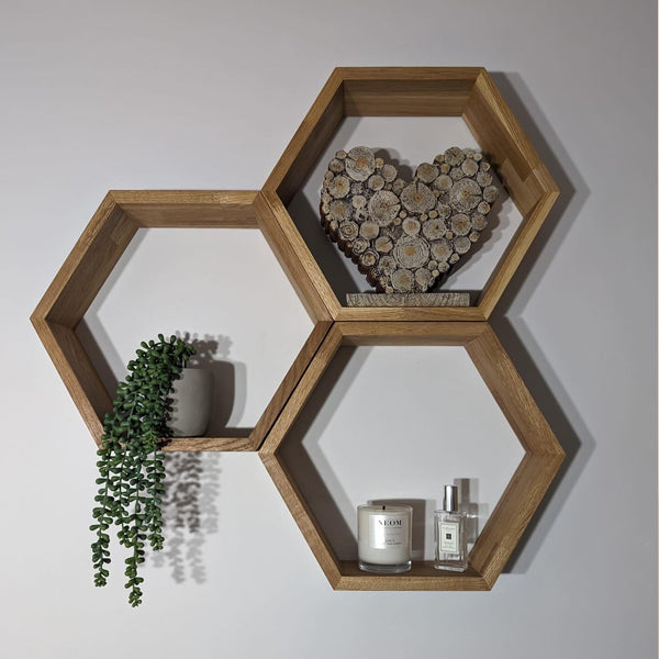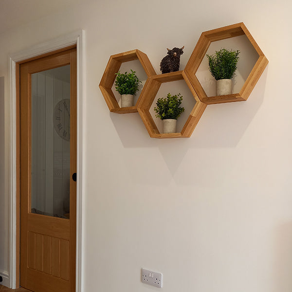 Our solid oak hexagon shelf will make a beautiful addition to any space. Each shelf is hand-crafted and individually manufactured to the highest standard from sustainably sourced European oak.