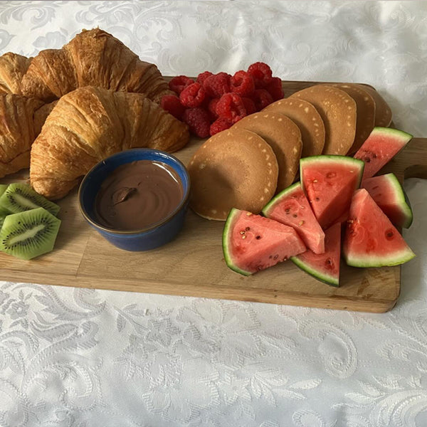 Our large solid oak wooden platter boards are practical and hygienic, finished with a natural wood care oil that is certified food-safe and antibacterial.